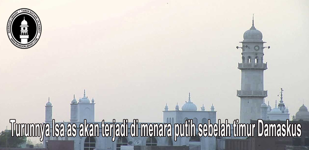 Masroor Library – Yang Mulia Rasulullah saw telah menubuatkan bahwa turunnya Isa as akan terjadi di menara putih sebelah timur Damaskus atau Isa as akan turun di menara putih sebelah timur Damaskus (Sahih Muslim). Menurut Mujaddid abad kesembilan, Hadhrat Imam Jalaludin As-Suyuti bahwa menara ini hendaknya berada di sebelah timur Damaskus dan tidak harus terletak di kota Damaskus. Catatan Ibnu Majah terbitan Mesir [baca tentang Baiat Pertama di Ludhiana].