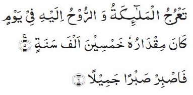 Malaikat-malaikat dan Ruh naik kepada-Nya dalam satu hari yang setara dengan lima puluh ribu tahun (QS Al Ma’arij ; 5)[1]