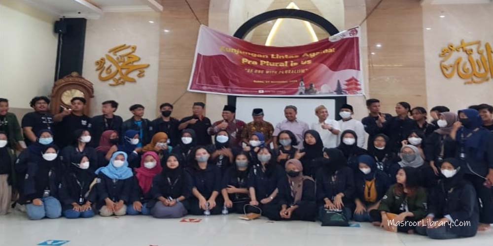 Masroor Library – Sabtu, 27 November 2021 pukul 11.00 WIB siang itu di Masjid Nushrat Jahan Semarang suasana mendadak menjadi ramai, terlihat Rombongan Mahasiswa-mahasiswi UNNES Semarang yang mengenakan almamater warna hijau dan t-shirt warna hitam berjumlah sekitar 47 orang berduyun-duyun memasuki areal masjid. Mereka turun dari bus Kampus dan sebagian mengendarai sepeda motor. Di dalam Masjid sudah ada Mln. Syaefullah Ahmad Farouk (Mubda Jateng-3), Bapak H. Muhammad Arief Syafi’I (Amirda Jateng-3) Bapak Roy Ataul Jamil (Nazim Wilayah) dan beberapa orang pengurus JAI Semarang yang menyambut dengan ramah kedatangan meraka. Setelah beramah tamah dan mengenalkan diri rombongan dipersilahkan istirahat sejenak mengamati bangunan masjid yang indah dengan gaya arsitektur gabungan timur tengah dan eropa mirip seperti Masjid Cordoba di Spanyol.