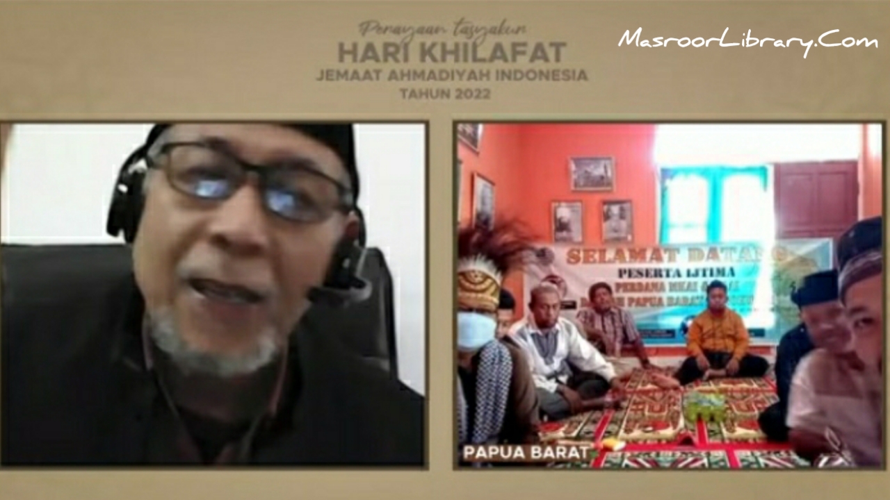 Masroor Library – Manokwari, Papua Barat [29/5]. Setelah Penutupan Acara Ijtima MKAI & MAAI Daerah Papua Barat, Minggu (29/5) pagi, peserta Ijtima kemudian langsung mengikuti acara Peringatan Hari Khilafat ke-114 tahun 2022 yang ditayangkan langsung dari Pusat. Beberapa anggota lainnya dari JAI Manokwari dan JAI Manokwari Selatan juga ikut hadir di Rumah Missi (Kontrakan) Mubalig Daerah Papua Barat di bilangan KODAM XVIII/Kasuari, Arfai, Manokwari itu.